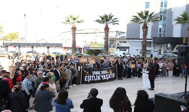 Çiğli Belediye Başkanı Onur Emrah Yıldız da konuşmasında kadınların mücadelesine destek verdiklerini belirtti. Yıldız, “Bu gün, sadece bir anma değil; aynı zamanda bir hatırlatma, bir uyarı ve bir mücadele çağrısıdır. Kadına yönelik şiddet, insanlık tarihinin en büyük utançlarından biridir ve ne yazık ki hala hayatlarımızın bir parçası olmaya devam etmektedir. Çiğli Belediyesi olarak biz, kadınların yanında olmayı bir görev değil, bir sorumluluk olarak görüyoruz. Kadınların özgürce yaşayabildiği, eşit haklara sahip olduğu, şiddetten uzak bir Çiğli için çalışıyoruz. Kadınların barınma, istihdam, eğitim ve sosyal yaşamda güçlenmesi için projelerimizi hayata geçiriyoruz. Çiğli’de kadınların sesi daha gür çıkacak, kadınların mücadelesi daha güçlü olacak. Bizler, kadınların yanında olmaya, onların haklarını savunmaya ve eşitlikçi bir gelecek için çalışmaya