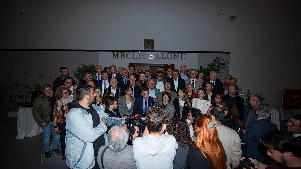 CHP Grup Başkan Vekili Murat Aydın’ın okuduğu yazılı açıklamada şu ifadeler yer aldı: ‘Büyük Atatürk diyor ki; memleketin dahilinde iktidara sahip olanlar gaflet, dalalet hatta hıyanet içinde bulunabilirler. Hatta bu iktidar sahipleri şahsi menfaatlerini müstevlilerin siyasi emelleriyle tevhit edebilirler. Kurtuluşun ve kuruluşun şehri İzmir’in 100’üncü kurtuluş yıldönümünde, 9 Eylül 2022’de Mustafa Kemal Atatürk’ün sözlerini tekrar eden İzmir Büyükşehir Belediye Başkanı Tunç Soyer hakkında soruşturma açıldı. Neymiş? Bu sözler kişinin hatırasına hakaretmiş. Neymiş? Bu sözler halkı kin ve düşmanlığa tahrik ediyormuş. Biz bu soruşturmanın hedefinin ne olduğunu biliyoruz. Bu soruşturmanın hedefi ne Tunç Soyer’dir ne CHP’dir ne İzmir Büyükşehir Belediyesi’dir. Bu soruşturmanın hedefi doğrudan doğruya Mustafa Kemal Atatürk’ün cumhuriyetin kuruluşuyla ortaya koyduğu temel ilke ve değerlerdir. Hesaplaşmaya çalıştıkları kişi Mustafa Kemal Atatürk’tür. CHP İzmir Büyükşehir Belediye Meclis Grubu bu durumun farkında olarak her zaman siyasi tavrını net olarak ortaya koyacaktır. Cumhuriyetle, milli mücadeleyle kavgalı olanlara, kendilerince bir tarih yazmaya çalışanlara, bu ülkenin en değerli evladı olan Büyük Atatürk’e laf söylemeye cesaret edemeyince onun sözlerini tekrar eden Tunç Soyer’e soruşturma açanlara tek sözümüz var; başaramayacaksınız. İzmir halkı ve onun seçilmiş meclis üyeleri olarak bizler size izin vermeyeceğiz. Büyük Atatürk’ün açtığı yolda gösterdiği hedefe hiç durmadan yürüyen ve onun sözlerini tekrar eden Tunç Soyer bu yolda yalnız yürümüyor. Onun yanında vatansever ve Atatürk’e gönülden bağlı İzmir halkı var. Onun yanında Büyükşehir Belediyesi Meclis Grubu var, CHP örgütü var. O halde soruyoruz; bu soruşturmaya izin verenlere ve Mustafa Kemal Atatürk’ün ideolojilerini soruşturma cesareti gösterenlerin arkasında kim var?”