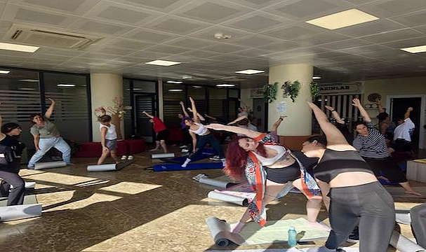 İzmir Büyükşehir Belediyesi bünyesinde faaliyet gösteren Genç İzmir tarafından “Yoga Saati” başlığıyla düzenlenen yoga atölyesine katılan gençler, hem bedensel esnekliklerini geliştirdi hem de zihinsel rahatlama imkânı buldu.
